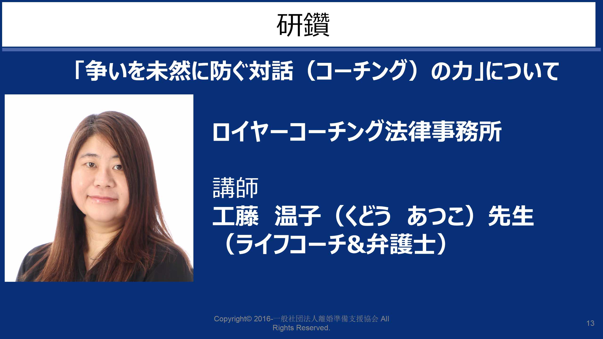 弁護士:「養育費、婚姻費用の最新の裁判例の解説」、「内縁、事実婚、同性婚の法的擁護」